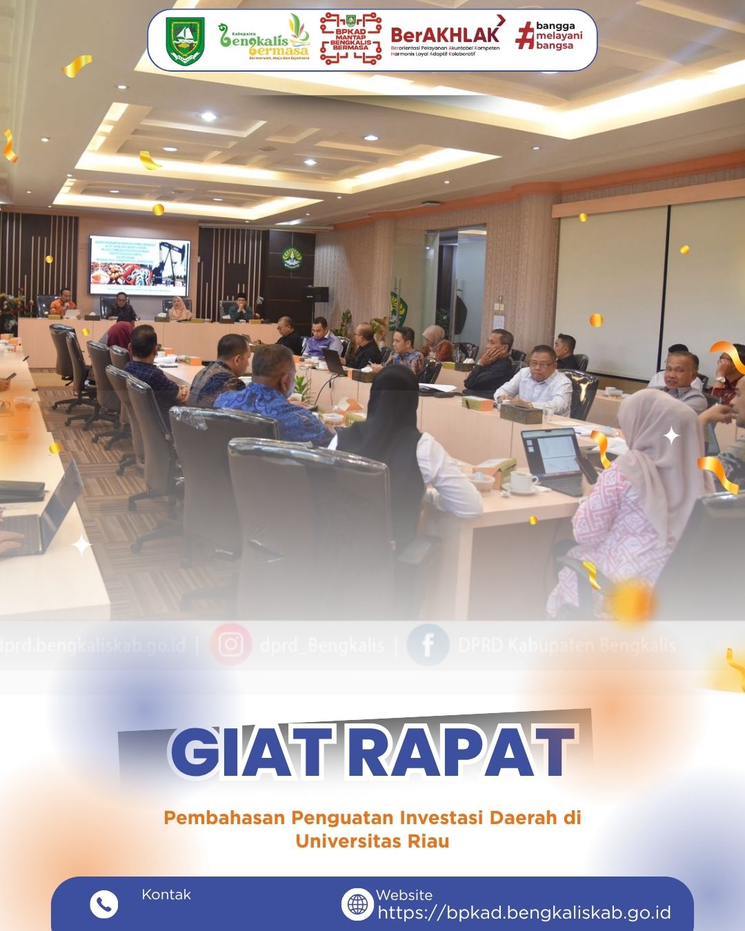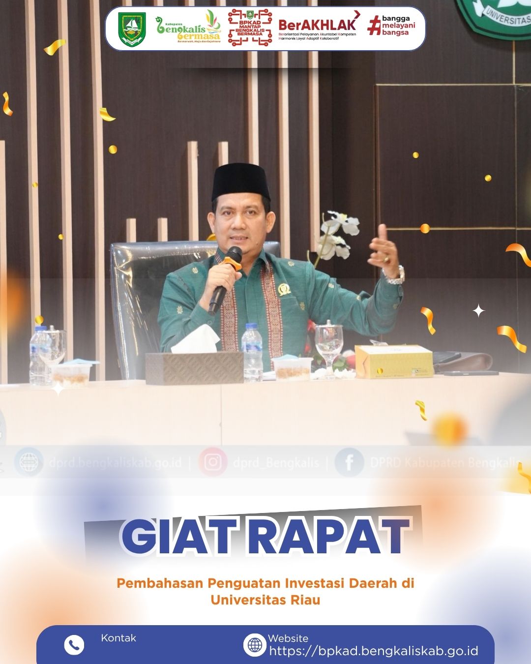 Pekanbaru — Komisi III DPRD Kabupaten Bengkalis terus menunjukkan komitmen dalam mendorong penguatan investasi daerah. Hal ini ditunjukkan melalui kehadiran Ketua Komisi III Sanusi, SH., MH., bersama Anggota Komisi III Sri Marzoli dan Jonner L. Tobing, pada Rapat Pembahasan Analisis Investasi Pemerintah Daerah yang berlangsung di Gedung Rektorat Universitas Riau pada Sabtu, (15/11/2025).